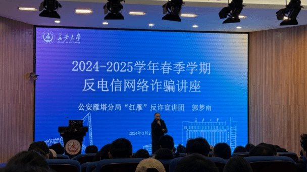 為進(jìn)一步增強(qiáng)在校大學(xué)生的反詐防騙意識(shí),全力保護(hù)學(xué)生財(cái)產(chǎn)安全,有效預(yù)防和減少校園電信網(wǎng)絡(luò)詐騙案件的發(fā)生,3月21日下午,保衛(wèi)處(保衛(wèi)工作部)聯(lián)合研工部、育才路派出所邀請(qǐng)公安雁塔分局“紅雁”反詐宣講團(tuán)在南校區(qū)東院為廣大師生開(kāi)展了一場(chǎng)別開(kāi)生面的反詐宣傳安全教育講座。此次宣講旨在增強(qiáng)師生的反詐意識(shí),遠(yuǎn)離電信網(wǎng)絡(luò)詐騙的威脅,提升警校合作力度,加強(qiáng)校園平安穩(wěn)定建設(shè)。