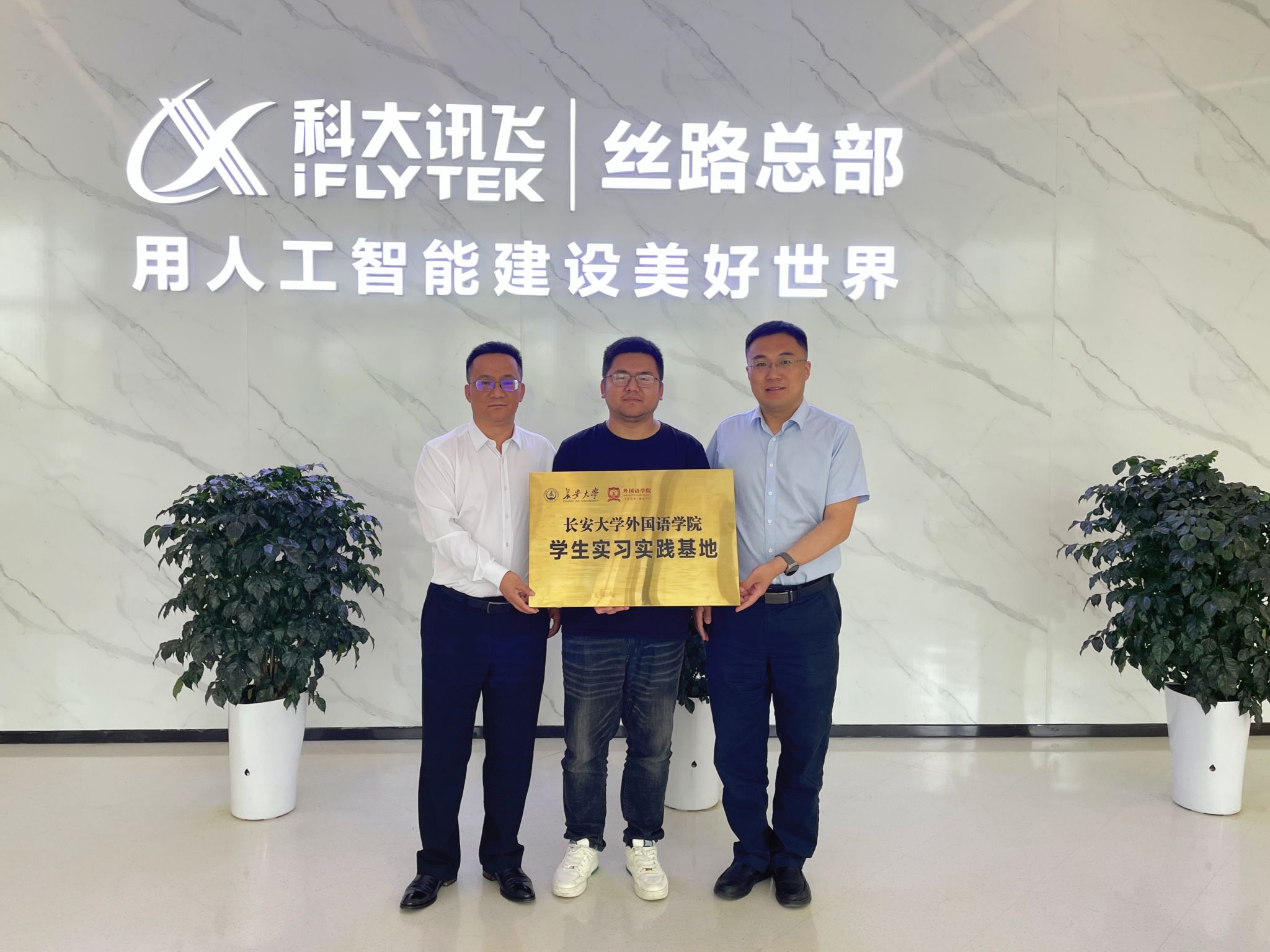 雙方表示,將以此次交流為嶄新起點,進一步加強溝通協作,學院正式授予科大訊飛絲路總部“學生實習實踐基地”牌匾。