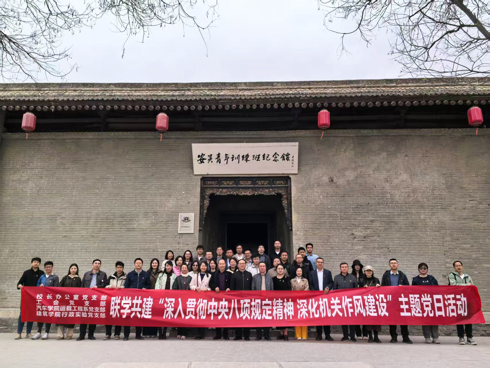 4月2日,汽車學(xué)院運載工程系黨支部與校長辦公室黨支部、工會黨支部、建筑學(xué)院行政實驗黨支部赴咸陽涇陽縣安吳青年訓(xùn)練班紀(jì)念館,開展聯(lián)學(xué)共建“深入貫徹中央八項規(guī)定精神 深化機關(guān)作風(fēng)建設(shè)”主題黨日活動,通過紅色教育、紀(jì)律學(xué)習(xí)與實踐研討相結(jié)合的形式,強化黨員教師的黨性修養(yǎng)與責(zé)任擔(dān)當(dāng)。