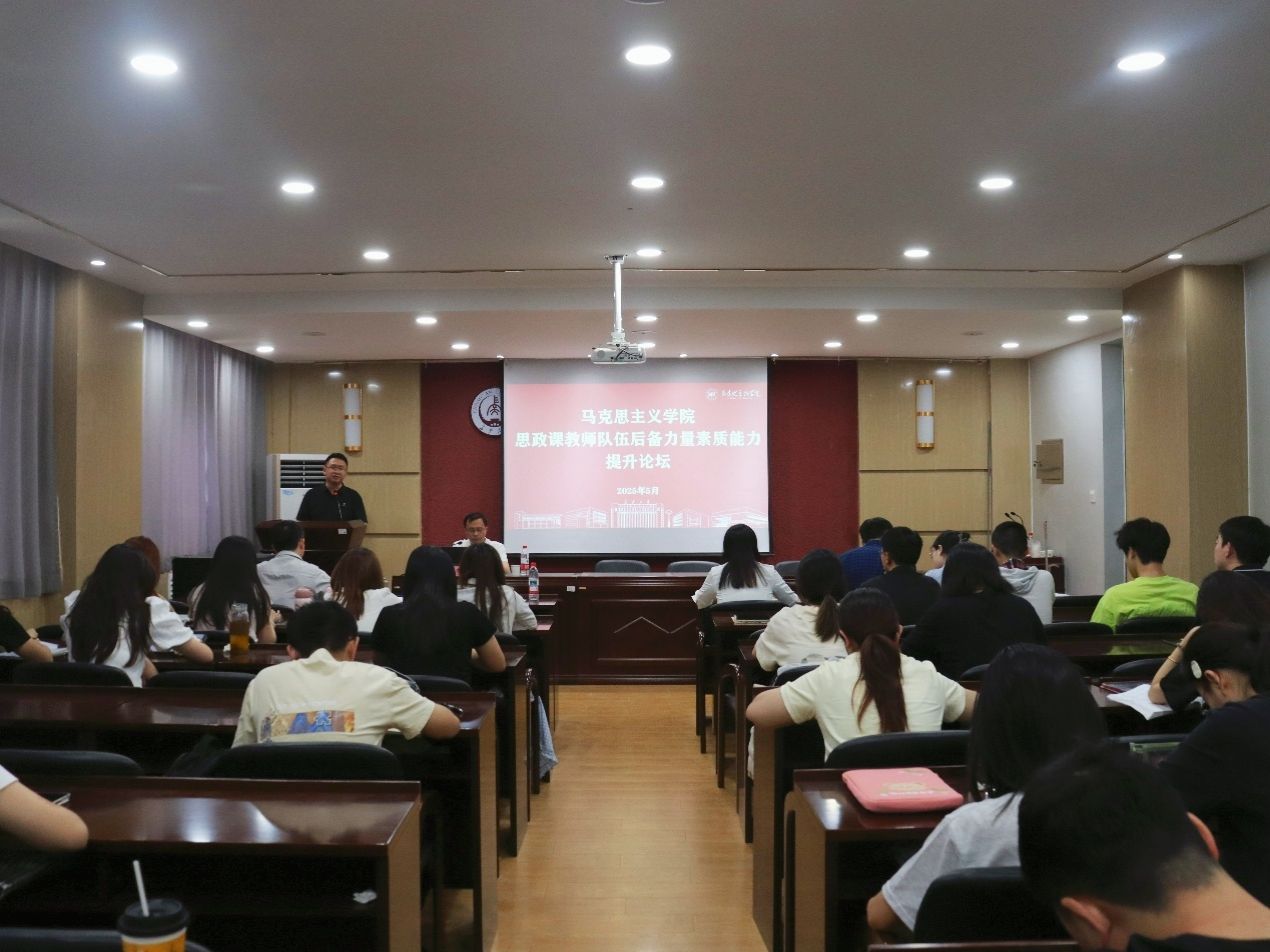 為深入貫徹中央八項規定精神學習教育,全面貫徹落實全國教育大會、全國高校思想政治工作會議精神,切實提升思政課教師隊伍后備力量的理論功底、知識素養,5月7日下午,馬克思主義學院于基礎樓503報告廳舉辦思政課教師隊伍后備力量素質能力提升論壇。陜西高校思政研究會常務副秘書長、陜西科技大學宣傳部部長李萌作網絡思想政治教育專題分享。學院黨委書記李小芹、院黨委副書記馮迪、學生工作辦公室副主任秦豐以及學院研究生、本科生代表參加本次論壇。論壇由馮迪主持。