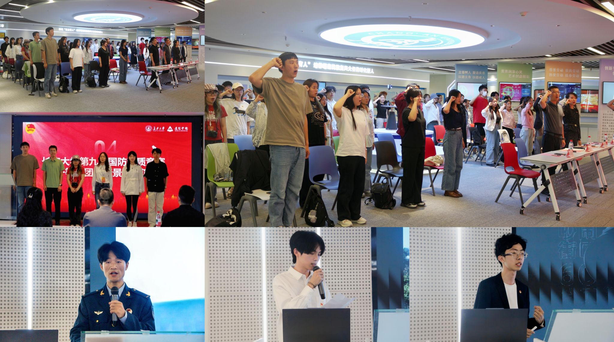張鴻忠?guī)ьI(lǐng)全體團(tuán)員重溫入團(tuán)誓詞,堅定維護(hù)國家安全的信念;楊博博結(jié)合軍旅經(jīng)歷講述青年投身國防重要性;校國防競賽一等獎團(tuán)隊以情景劇演繹展現(xiàn)青年維護(hù)文化安全的擔(dān)當(dāng);研究生支教團(tuán)成員韓金定分享鄉(xiāng)村教育實(shí)踐經(jīng)歷;創(chuàng)新創(chuàng)業(yè)榜樣秦梓逍分享自己的創(chuàng)新創(chuàng)業(yè)歷程。