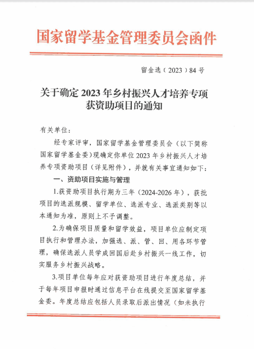 近日,國家留學基金管理委員會公布了2023年“鄉村振興人才培養專項”立項結果,我校申報的“面向‘雙碳’新能源開發利用鄉村振興人才培養專項”獲批。