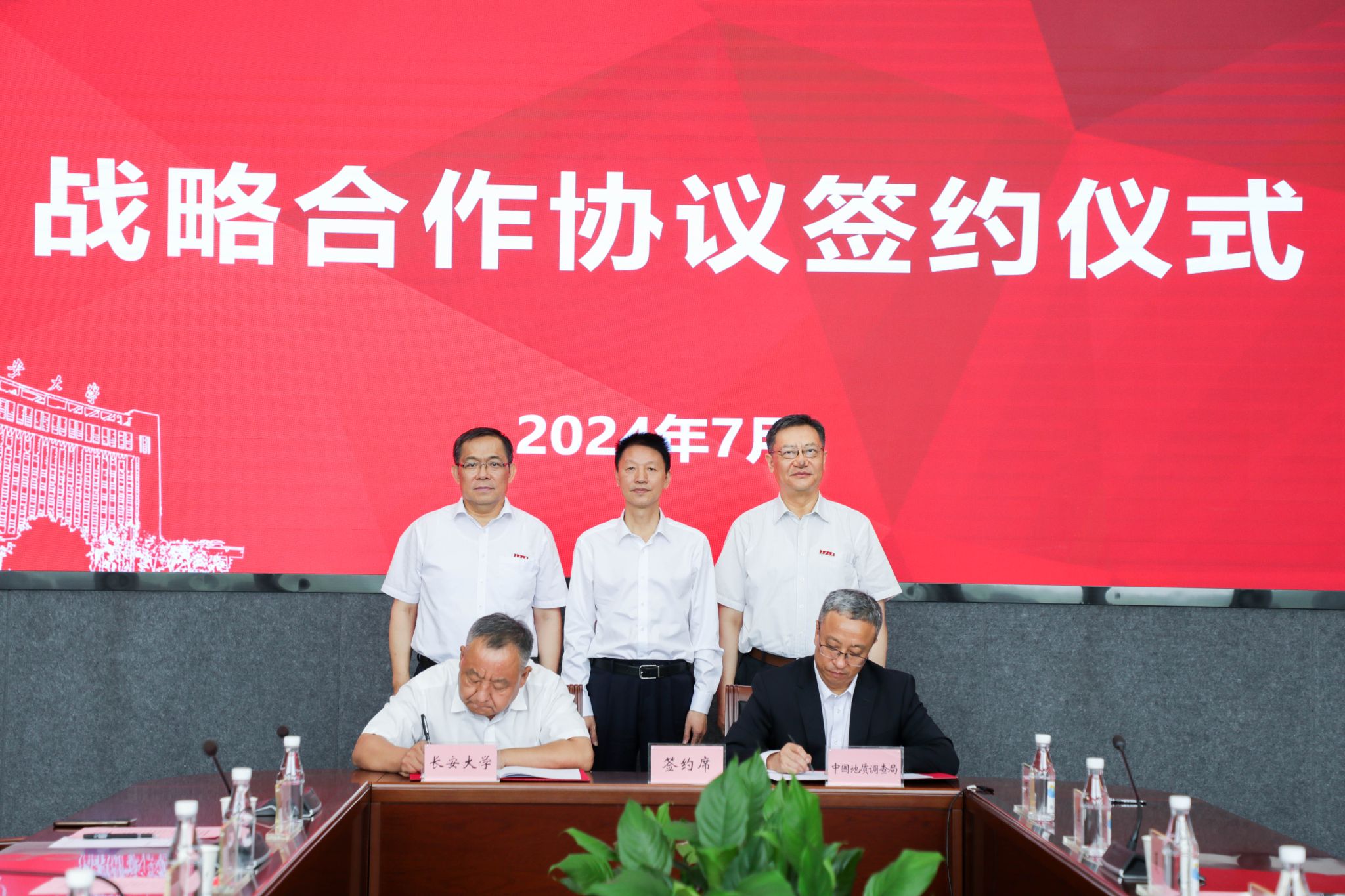 2024年7月3日,自然資源部中國地質調查局與長安大學簽署戰略合作協議。自然資源部黨組成員、中國地質調查局局長李金發與長安大學黨委書記陳志堅、校長沙愛民就深化局校合作進行座談交流,雙方簽署戰略合作協議。中國地質調查局黨組成員、副局長徐學義,陜西省自然資源廳黨組成員、副廳長王雁林,陜西省地質調查研究院黨委書記黃建軍,中國工程院院士、長安大學教授湯中立,中國科學院院士、長安大學教授彭建兵,長安大學副校長朱杰君、范文、陳建勛等出席。