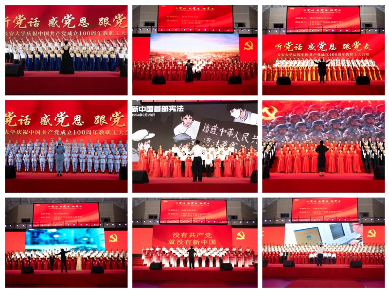 合唱活動中,26支參賽隊伍演唱了《沒有共產黨就沒有新中國》《不忘初心》《祖國不會忘記》《我和我的祖國》《我們走在大路上》《中國,中國,鮮紅的太陽永不落》等經典曲目,并輔以朗誦、舞蹈、視頻等多種表現形式,以昂揚的風貌、充滿激情的歌聲向黨的百年華誕獻禮,表達了長安大學人始終與黨和祖國同心同向同行的決心和為國家建設矢志奮斗、無私奉獻的豪情。陳志堅書記、沙愛民校長等校領導參加了此次大合唱。