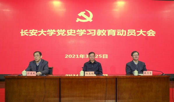 3月25日,長安大學召開黨史學習教育動員大會,深入學習貫徹習近平總書記在黨史學習教育動員大會上的重要講話精神,認真貫徹落實黨中央決策部署和教育部、陜西省工作要求,對全校黨史學習教育工作進行動員和部署。校黨委書記陳志堅作動員講話,校長沙愛民主持會議。