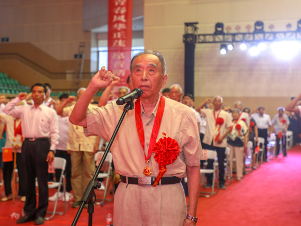 6月28日,他們和一百多位老黨員代表一起來到南校區北院體育館,參加了“光榮在黨50年”紀念章頒發儀式。