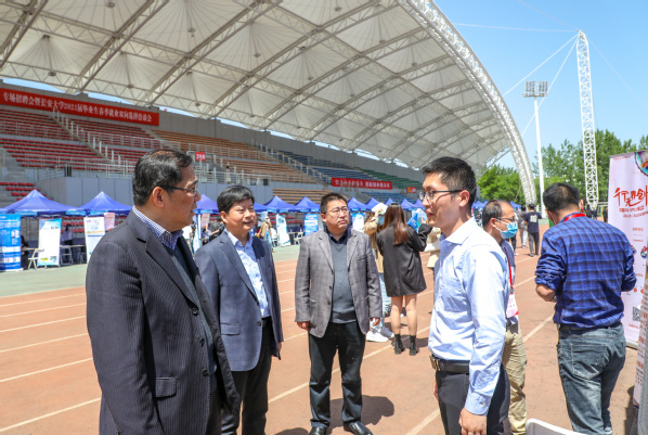4月28日,長安大學2021屆畢業生春季就業雙向選擇洽談會暨全國自然資源領域(西北地區)專場招聘會在北校區朝暉體育場舉行。校黨委書記陳志堅、校長沙愛民、校黨委副書記黎開誼等校領導到現場看望了用人單位代表,了解用人單位對我校人才培養、學科建設、就業服務等方面的意見和建議,并與應聘的畢業生親切交談,詢問求職的進展情況。
