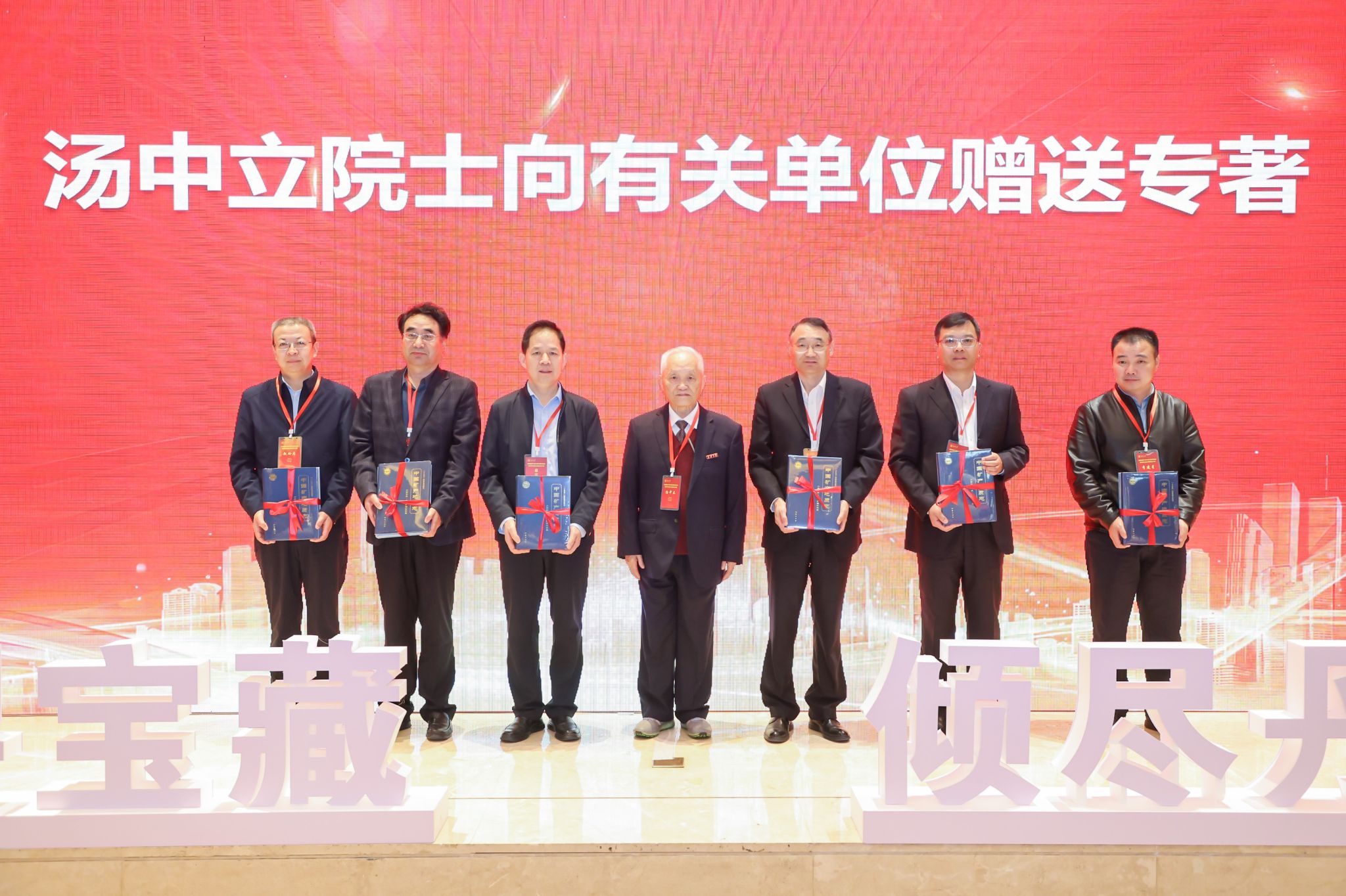在《湯中立傳》發行儀式上,該書作者唐淑惠分享了傳記撰寫過程中的感人故事和心得體會。湯中立院士向相關單位代表贈送專著。