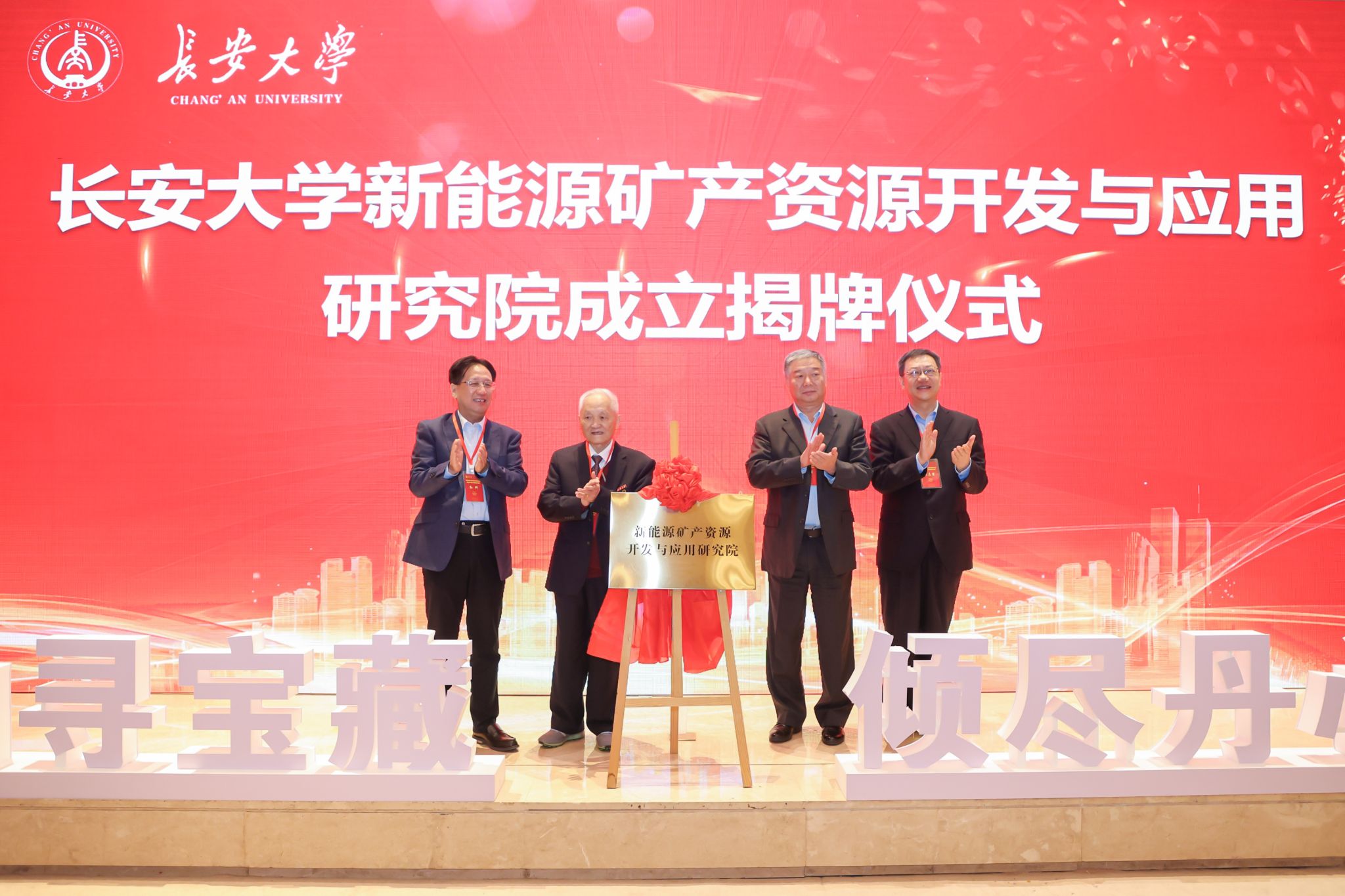 活動現場,孫科、嚴光生、陳志堅、湯中立為長安大學新能源礦產資源開發與應用研究院揭牌。
