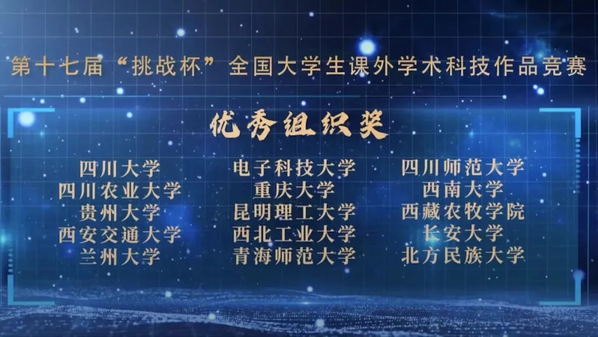 4月12日晚,由共青團中央、中國科協、教育部、中國社會科學院、全國學聯、四川省政府共同主辦,四川大學承辦的第十七屆“挑戰杯”全國大學生課外學術科技作品競賽閉幕式暨“科創先行強國有我”網絡主題活動舉辦。