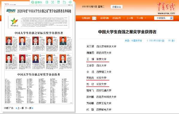 近日,2020年度“中國大學生自強之星”獎學金推報活動與“中國電信獎學金”評選活動獲獎名單揭曉。經學校推薦、省級初評、全國評審等環節,我校公路學院王博、建筑學院黨旭堯、人文學院劉欣等三名同學榮獲2020年度“中國大學生自強之星”獎學金,并獲得“陜西省大學生自強之星”稱號;建筑學院黨旭堯、公路學院陳謙等兩名同學榮獲2020年度“中國電信獎學金·飛Young獎”。