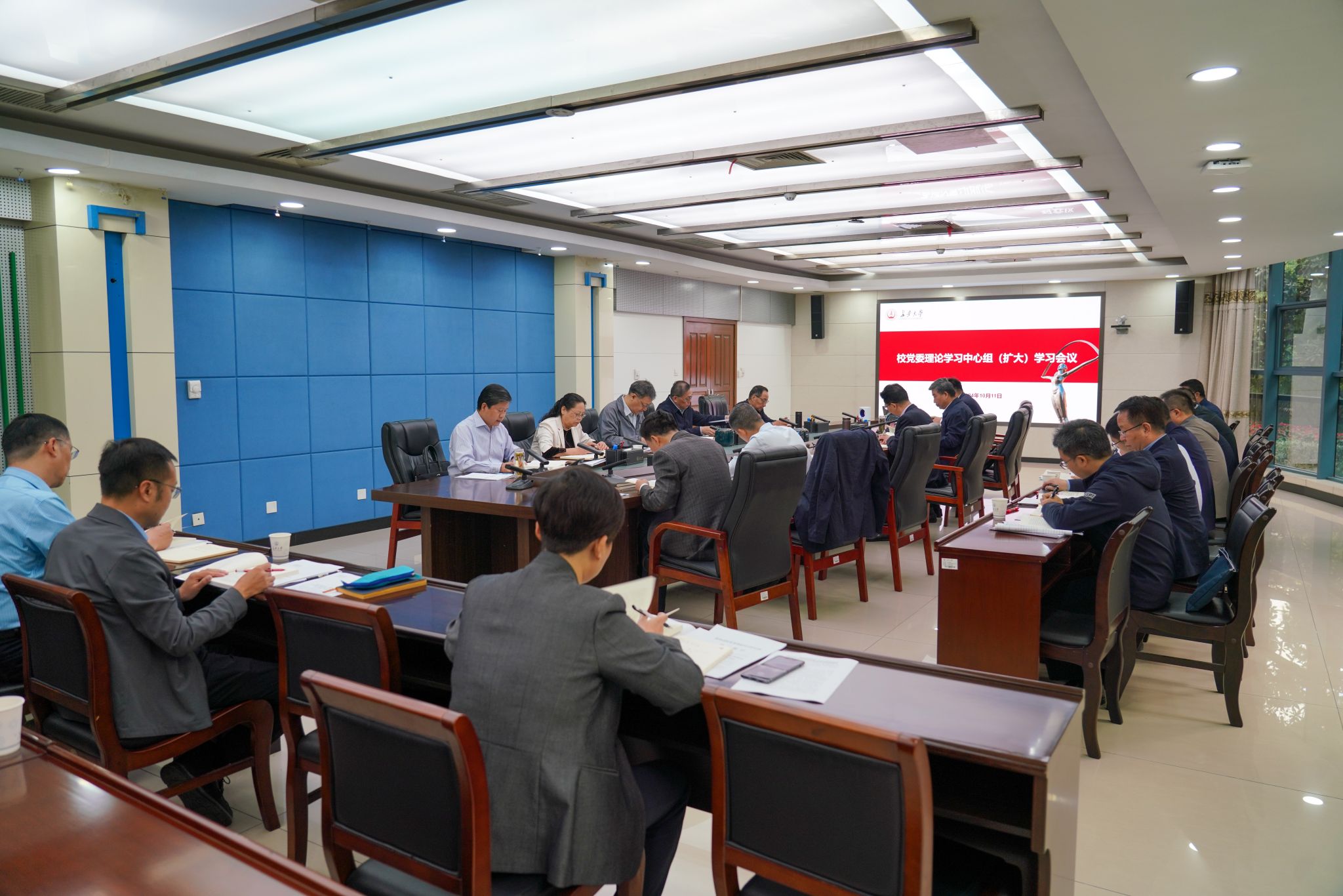 10月11日,校黨委理論學習中心組(擴大)學習會議在北校區北辰樓會議中心第三會議室召開,集中學習黨的二十屆三中全會精神和全國教育大會精神,聯系思想、工作實際進行專題研討。校黨委書記陳志堅主持會議。