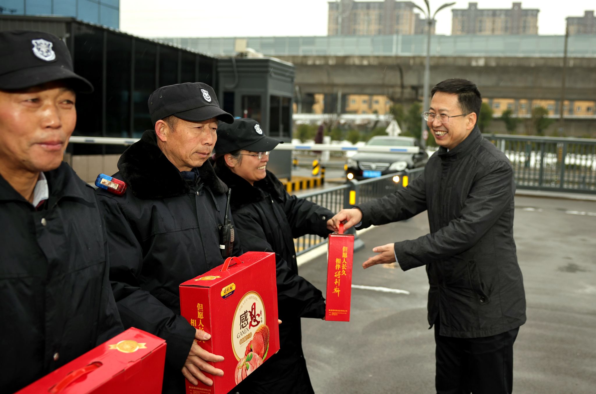 1月25日,在農(nóng)歷春節(jié)即將到來(lái)之際,踏著新春的第一場(chǎng)雪,校黨委副書記徐引正、黎開誼,副校長(zhǎng)王建偉,校黨委常委、組織部長(zhǎng)李文雄,校長(zhǎng)助理杜強(qiáng)分別帶隊(duì),看望并慰問(wèn)了在寒假及春節(jié)期間依然堅(jiān)守在工作崗位的一線教職員工。