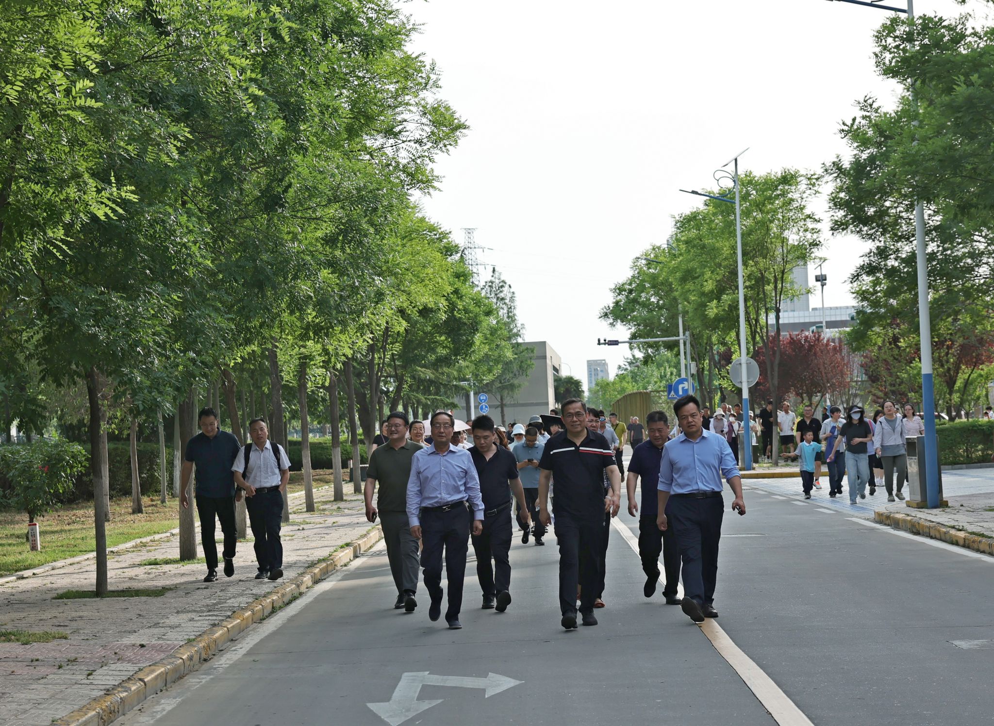 沙愛民宣布健步走活動正式開始。教職工們精神抖擻地從起點出發(fā),沿著精心設(shè)計的路線闊步前行,每一步都是對教育初心的堅守,每一程都是向宏偉目標的邁進。沿途綠樹成蔭,歡聲笑語不斷,隊伍中“喜迎黨代會,闊步向未來”的標語格外醒目,汗水與笑聲灑滿了通往黨代會會場的“奮進之路”,展現(xiàn)了教職工們團結(jié)一心、砥礪前行的堅定信念。