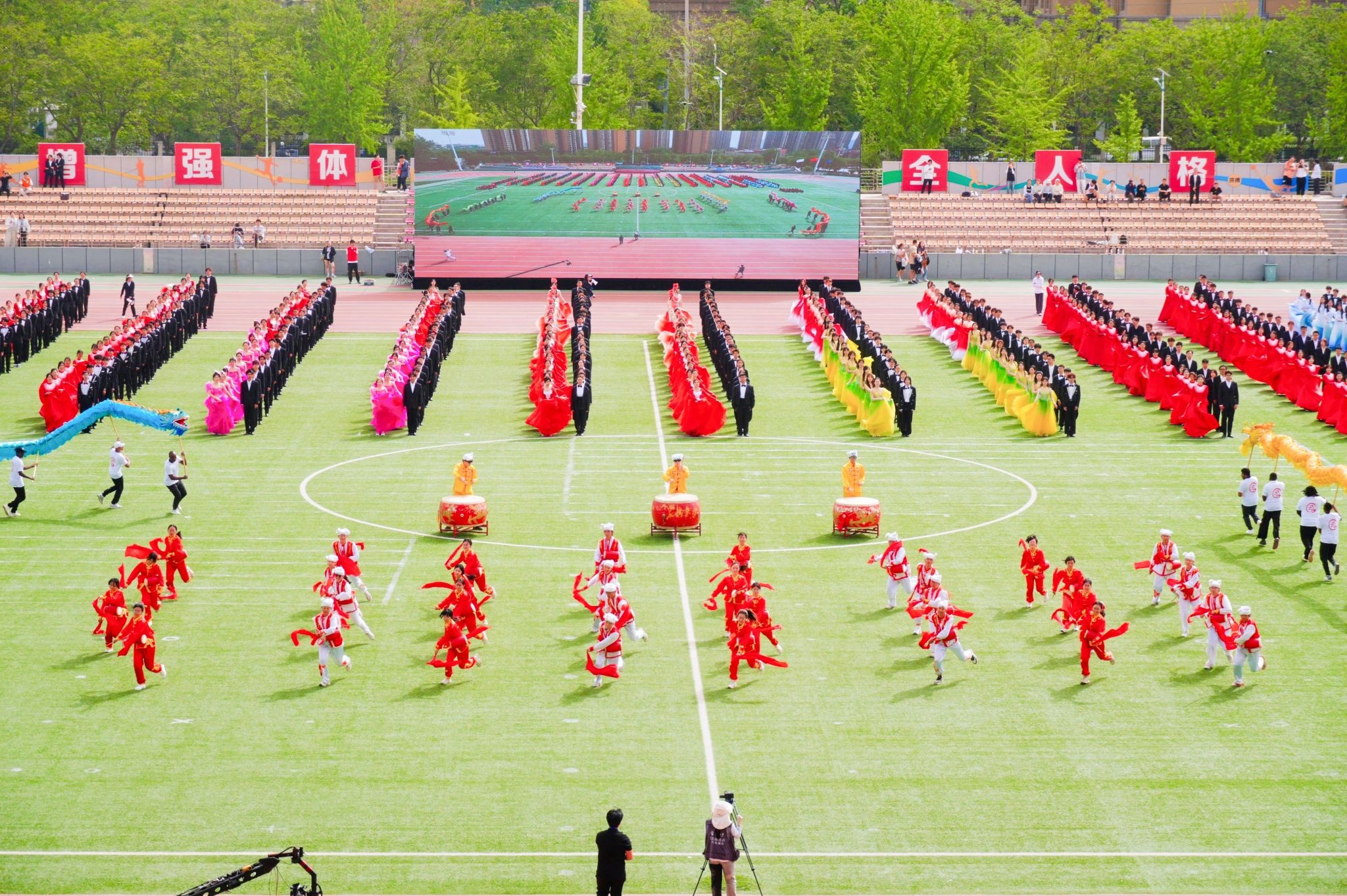 開場表演由舞龍武術和腰鼓表演組成。武術表演以蹁躚舞動的巨龍為開端,體現著對風調雨順的虔誠祈愿,也體現著自強不息精神的代代延續,巨龍在陽光下熠熠生輝,與來自陜北的腰鼓交相輝映,彰顯著中華兒女的豪邁無畏,展現了我校學子的青春活力;由籃球、健身健美、街舞三個項目組成的串燒表演以動感的節奏,點燃了場上的氣氛,洋溢著青春的蓬勃生機;21個學院組成的體育舞蹈表演團隊激情舞動,優雅拼搏,華美旋轉,他們以優雅的表演,為運動會奏響第一曲力與美的樂章。