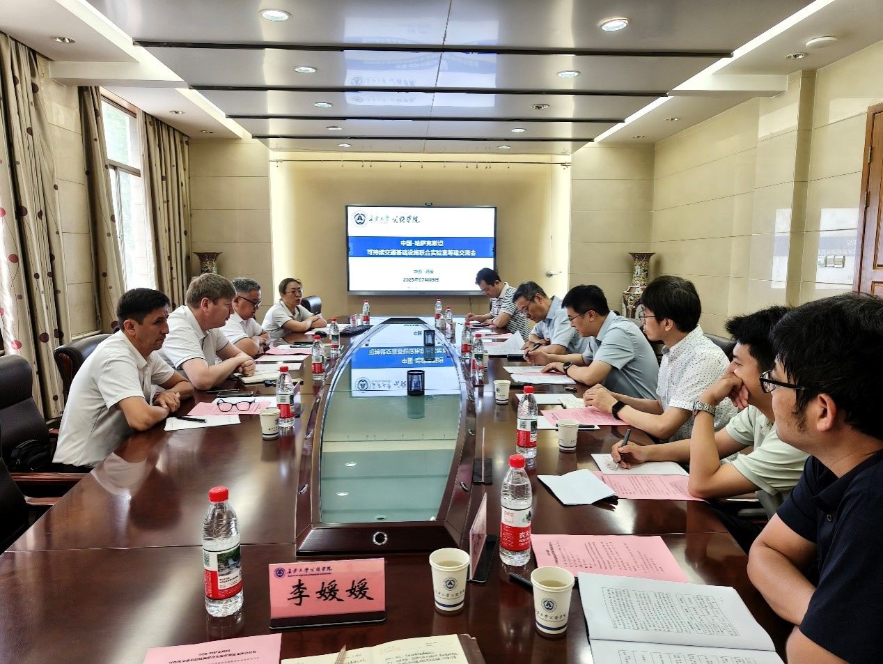 來訪期間,Zholdas Buribayev一行赴我校國際教育學院座談交流,充分了解了我校在國際教育領域的積極探索和豐富實踐,雙方就中國-中亞五國交通基礎建設領域人才培養(yǎng)聯(lián)盟框架下人才聯(lián)合培養(yǎng)、學術(shù)及標準論壇等議題開展深入探討。