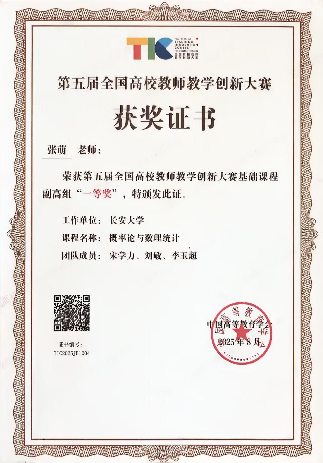8月16日至19日,由教育部高等教育司指導、中國高等教育學會主辦的第五屆全國高校教師教學創新大賽現場評審在北京理工大學舉行。經過激烈比拼,我校理學院張萌副教授榮獲基礎課程副高組一等獎,經濟與管理學院席岳婷教授榮獲新文科正高組三等獎。這是我校繼2024年第四屆大賽以來,再次獲得全國賽最高獎勵。