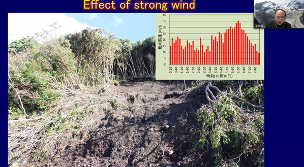 講座以日本地質災害的現象和挑戰為主題,特別針對山體滑坡和泥石流等現象進一步展開論述。近年來,由于全球氣候變化,極端降雨事件和地震災害頻發,在日本生態環境較脆弱的地區引發了大量的山體滑坡,造成了巨大財產損失和大量人員傷亡。王功輝通過自己多年的研究指出異常氣候條件下山體滑坡的誘發因素除了降雨外,大氣壓的變化及強風等引起的坡體樹木搖曳等也必須給予充分的考慮;結合日本近年地震引起的火山灰地區的滑坡現象及研究成果,對該類不飽和土地區流滑現象的誘發和運動機制給出了科學解釋,并對地震時該類山體坡面的地震動問題進行了探討;最后,他提出目前日本在預防地質災害方面的主要應對措施,對我國地質災害的預防具有重要的啟示意義。