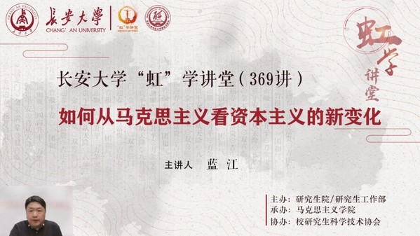 5月17日晚,由研究生院/研究生工作部主辦、馬克思主義學院承辦、校研究生科學技術協會協辦的“虹”學講堂第369講以線上講座形式舉行。南京大學藍江教授作了題為《如何從馬克思主義看資本主義的新變化》的報告,相關學院共300余名師生參加講座。
