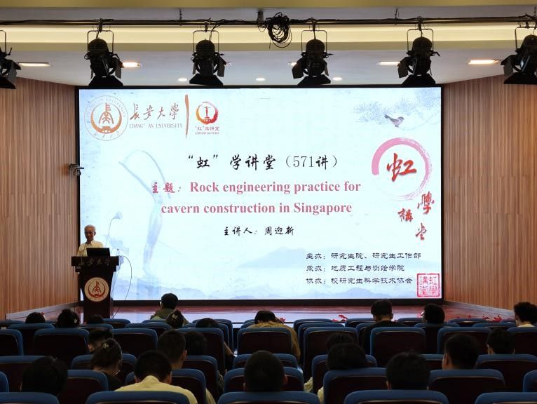 5月29日下午,由研究生院、研究生工作部主辦,地質工程與測繪學院承辦,校研究生科學技術協會協辦的“虹”學講堂第571講在南校區東院伯聲報告廳舉辦。新加坡工程院周迎新院士作題為“Rock engineering practice for cavern construction in Singapore”的報告,地質工程與測繪學院翟越教授主持報告會,相關學院共150余名師生參加講座。