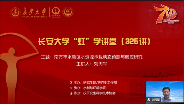 11月19日上午,由研究生院/研究生工作部主辦、水利與環境學院承辦、校研究生科學技術協會協辦的“虹”學講堂第325講通過“騰訊課堂”和“騰訊會議”以線上講座形式順利舉辦。中山大學劉丙軍教授作了題為“南方豐水地區水資源承載動態預測與調控研究”的報告,水環學院羅平平教授主持本次講座,我校相關學院共計350余名師生參加了此次講座。