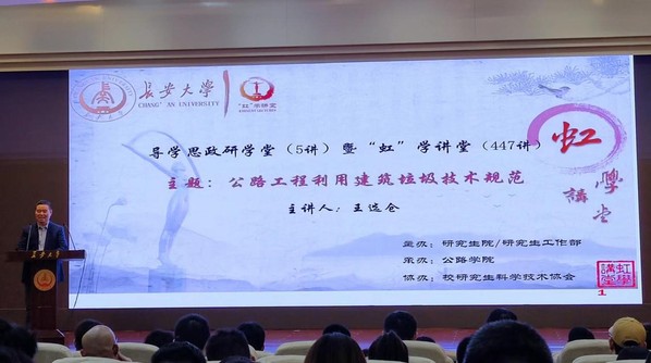 4月14日晚,由研究生院/研究生工作部主辦、公路學院承辦、校研究生科學技術協會協辦的導學思政研學堂5講暨“虹”學講堂第447講在南校區北院學術交流中心順利舉辦。長安大學王選倉教授作了題為“公路工程利用建筑垃圾技術規范”的報告,相關學院共300余名師生參加講座。