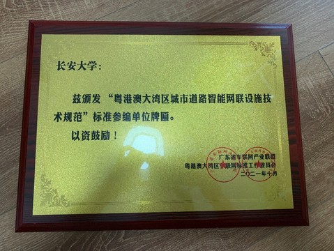 《粵港澳大灣區公路智能網聯設施技術規范》編寫人及參編單位牌匾頒發儀式
