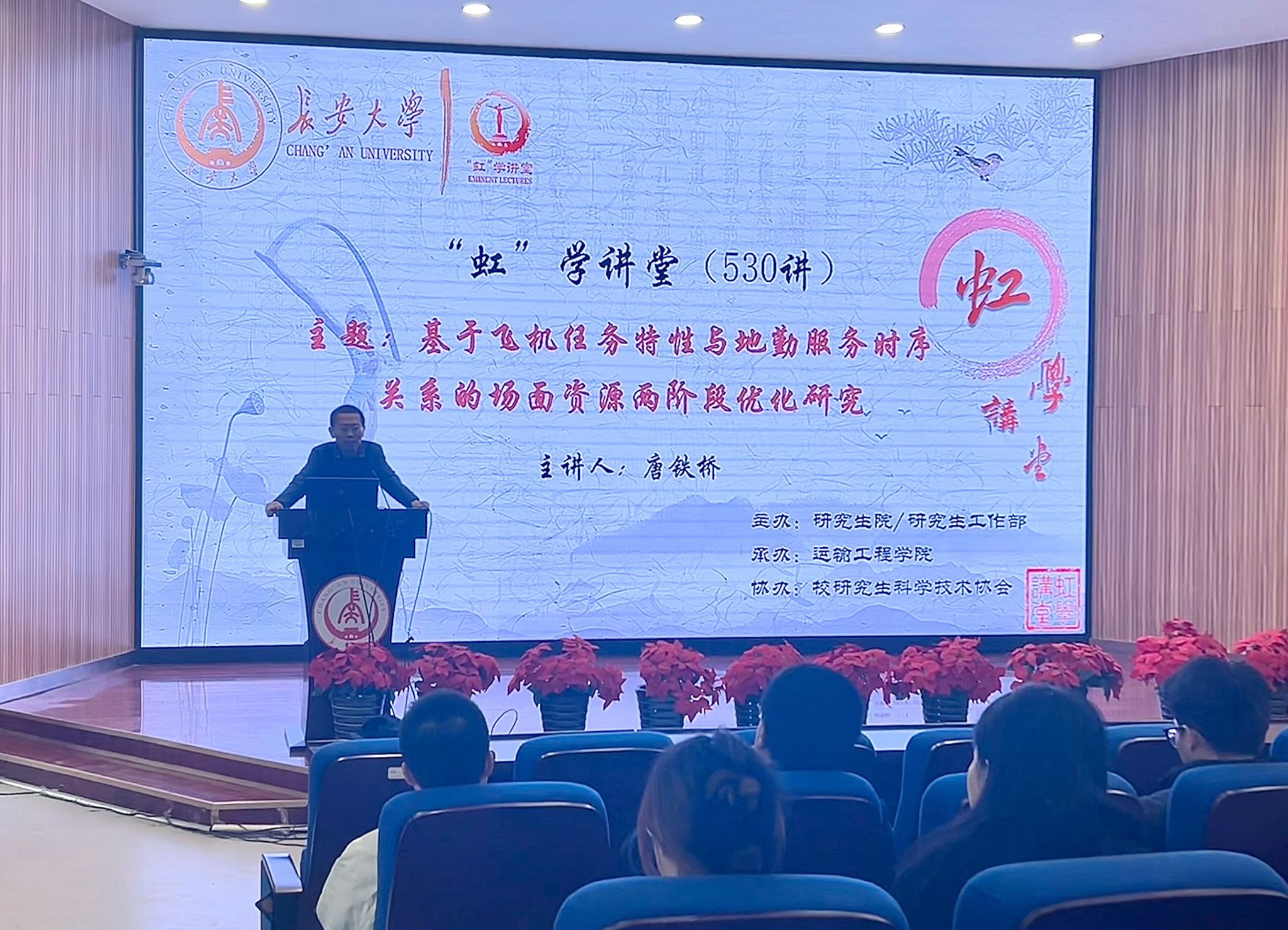 3月8日下午,由研究生院、研究生工作部主辦,運輸工程學院承辦,校研究生科學技術協會協辦的“虹”學講堂第530講在南校區東院伯聲報告廳舉行。北京航空航天大學唐鐵橋教授作題為“基于飛機任務特性與地勤服務時序關系的場面資源兩階段優化研究”的報告,相關學院共200余名師生參加講座。