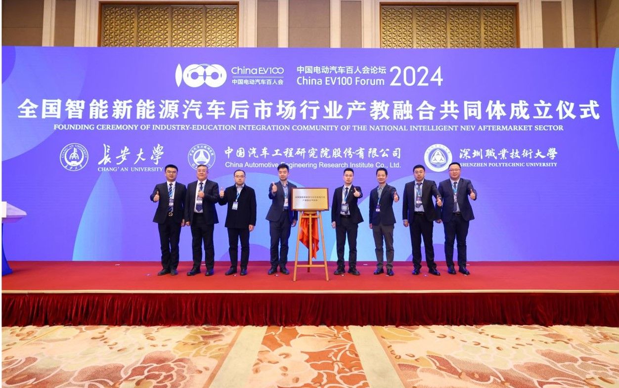 3月17日,中國電動汽車百人會論壇(2024?北京)召開,我校汽車學院院長趙軒出席“全國智能新能源汽車后市場行業產教融合共同體”成立儀式并為共同體揭牌,該共同體在教育部職教司指導下,由長安大學、中國中檢集團、中國汽車工程研究院股份有限公司、深圳職業技術大學牽頭籌備,百人會、多倫科技、大搜車、平安銀行、途虎養車等行業龍頭企業作為共同體理事長單位出席成立儀式。