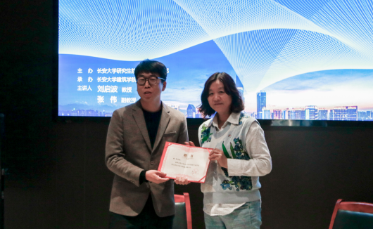 本次報告主要圍繞經驗分享、建筑設計學對人的影響、做好職業規劃三個部分展開。論壇開始,建筑學院劉啟波教授為張偉副教授頒發了長安大學校外研究生導師聘任證書。隨后,張偉副教授從自身求學和就業的經歷分享了建筑設計行業的發展狀況,指出并研究生現階段的任務是堅持學好專業知識、練好專業技能。通過分享身邊例子,張偉副教授認為建筑設計是對事物最基本的認知能力、分析能力、解決能力、溝通能力和審美能力的綜合把握,強調學習建筑不僅是為了生活,更是為了實現自我價值的提升。最后,張偉副教授勸勉同學們不僅要學好理論知識,還要想清楚自己的目標,做好職業生涯規劃。