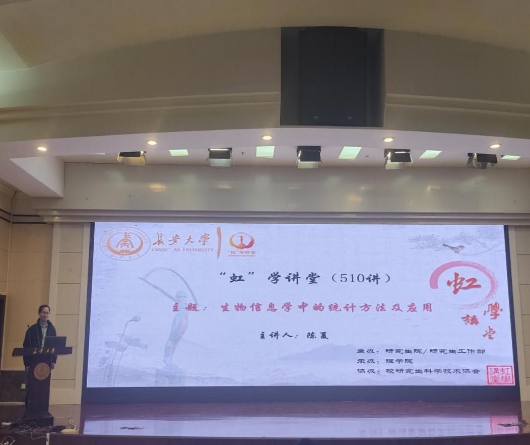 11月21日下午,由研究生院/研究生工作部主辦、理學院承辦、校研究生科學技術協會協辦的“虹”學講堂第510講在南校區北院學術交流中心舉行。陜西師范大學陳夏教授作題為“生物信息學中的統計方法及應用”的報告,理學院黨委副書記屈穎主持,相關學院共280余名師生參加講座。