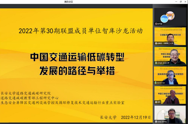 12月19日,2022年第30期交通運輸新型智庫聯盟成員單位智庫沙龍活動在我校舉行。沙龍以“中國交通運輸低碳轉型發展的路徑與舉措”為主題,邀請原交通運輸部總工程師周偉教授,清華大學環境學院副院長吳燁教授,日本廣島大學、日本工程院外籍院士張峻屹教授,華南理工大學林鎮宏教授,明尼蘇達大學曹新宇教授等5位專家學者作主題發言。沙龍活動由長安大學運輸學院王元慶教授主持,近300名線上聽眾同步參與此次沙龍活動。