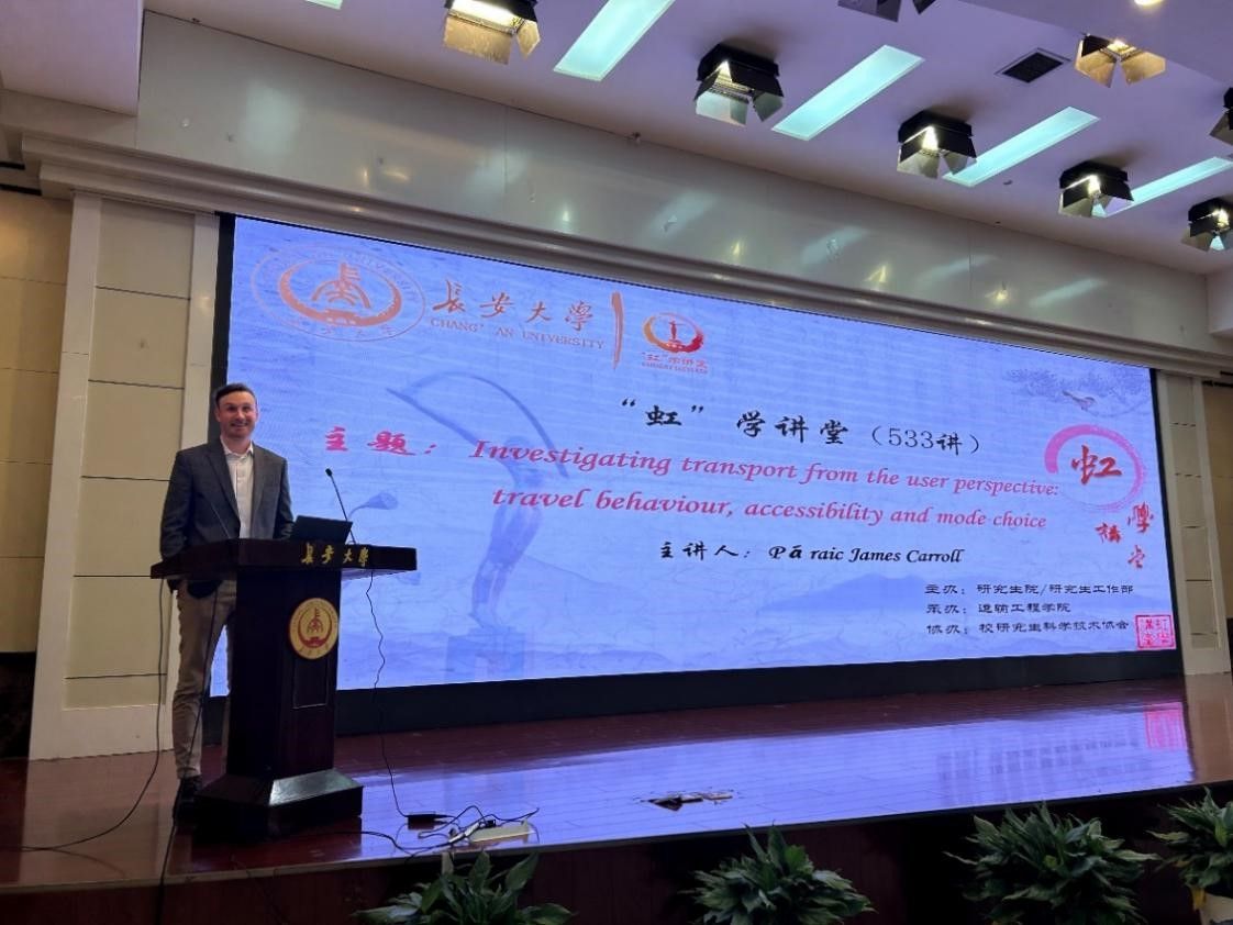 3月15日下午,由研究生院、研究生工作部主辦,運(yùn)輸工程學(xué)院承辦,校研究生科學(xué)技術(shù)協(xié)會(huì)協(xié)辦的“虹”學(xué)講堂第533講在南校區(qū)北院學(xué)術(shù)交流中心舉行。愛爾蘭都柏林大學(xué) Páraic James Carroll副教授作題為“Investigating transport from the user perspective: travel behaviour, accessibility and mode choice”的報(bào)告,長安都柏林國際交通學(xué)院副院長柏強(qiáng)主持報(bào)告會(huì),相關(guān)學(xué)院共200余名師生參加講座。