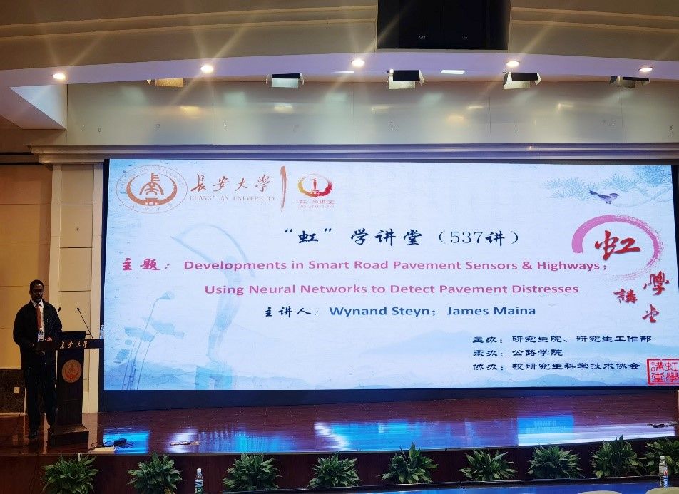 報告結束后,Wynand Steyn和James Maina教授耐心回答了同學們的問題,使同學們對智慧傳感器和神經網絡在公路工程中的應用有了更為深入的了解。