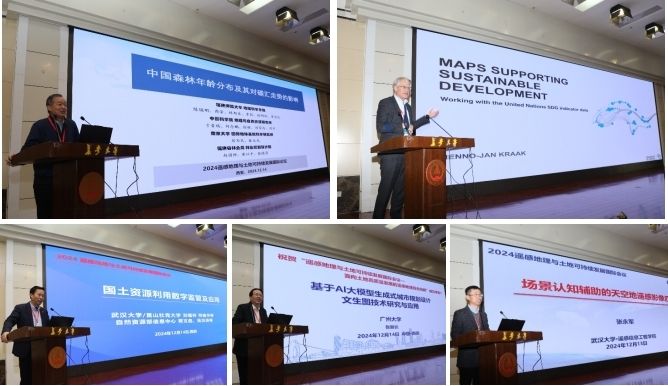 會(huì)上,加拿大皇家科學(xué)院院士陳鏡明教授作題為“中國森林年齡分布及其對碳匯走勢的影響”的特邀主旨報(bào)告;荷蘭特文特大學(xué)Menno-Jan Kraak教授作題為“支持可持續(xù)發(fā)展的地圖”的特邀主旨報(bào)告;昆山杜克大學(xué)劉耀林院士作題為“國土資源利用數(shù)字監(jiān)管及應(yīng)用” 的特邀主旨報(bào)告;廣州大學(xué)張新長院士作題為“基于AI大模型生成式城市規(guī)劃設(shè)計(jì)文生圖技術(shù)研究與應(yīng)用”的特邀主旨報(bào)告;武漢大學(xué)張永軍教授作題為“場景認(rèn)知輔助的天空地遙感影像匹配”的特邀主旨報(bào)告。會(huì)議還邀請中國科學(xué)院空天信息創(chuàng)新研究院高連如研究員、中南大學(xué)鄧敏教授、武漢大學(xué)閆利教授、自然資源部國土整治中心王軍研究員分享了最新的研究成果。