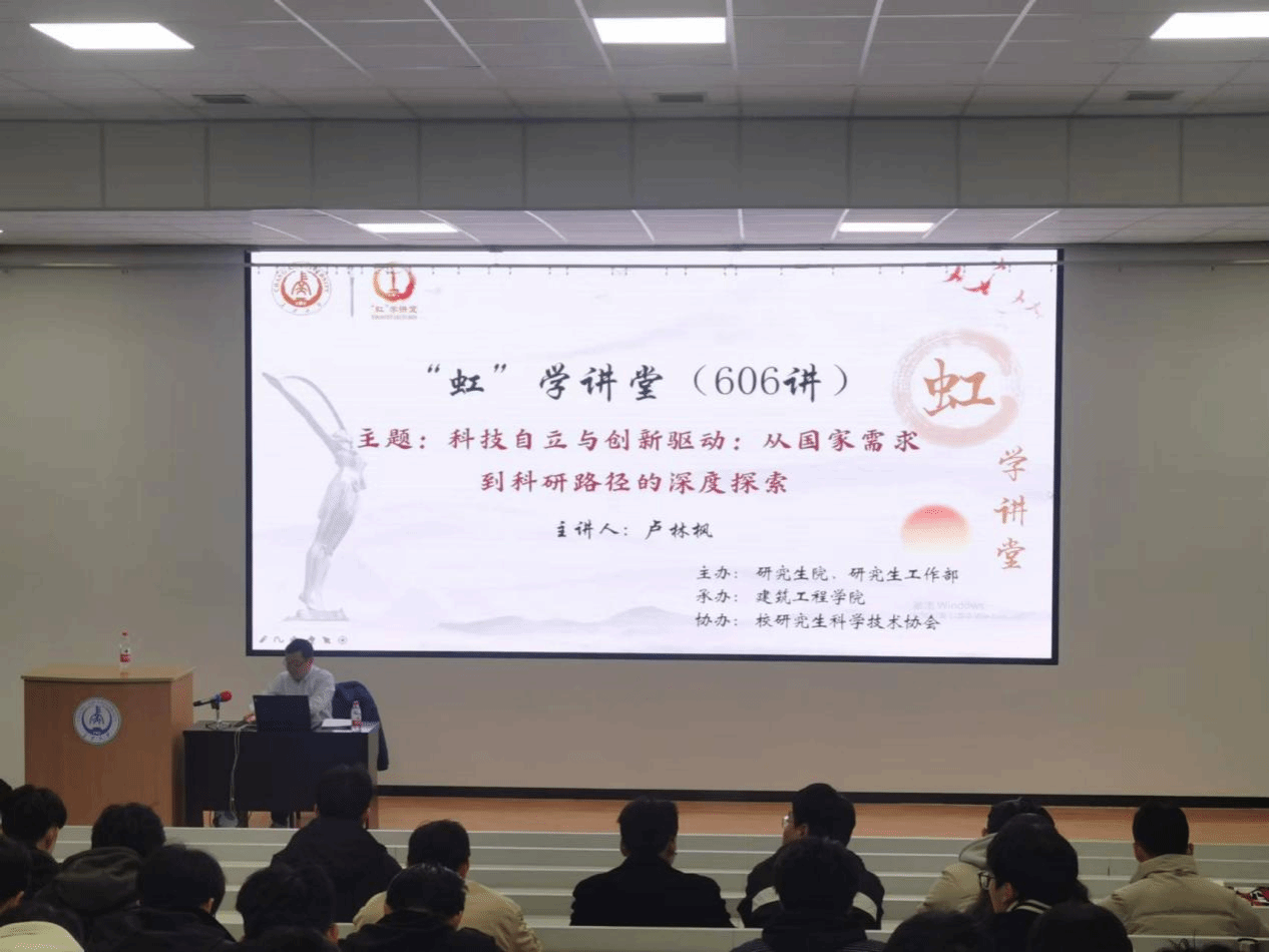 12月3日晚上,由研究生院、研究生工作部主辦,建筑工程學院承辦,校研究生科學技術(shù)協(xié)會協(xié)辦的“虹”學講堂第606講在南校區(qū)西院綜合樓報告廳舉辦。長安大學盧林楓教授作題為“科技自立與創(chuàng)新驅(qū)動:從國家需求到科研路徑的深度探索”的報告,相關(guān)學院共180余名師生參加講座。