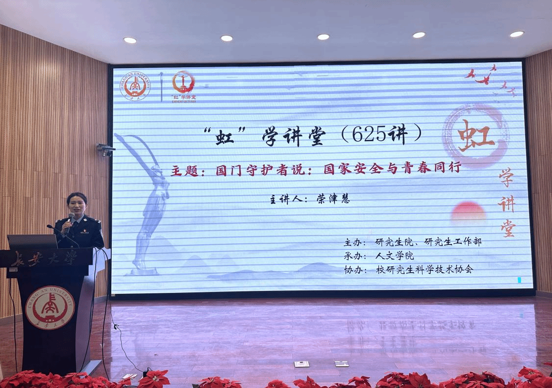 4月9日上午,由研究生院、研究生工作部主辦,人文學(xué)院承辦,校研究生科學(xué)技術(shù)協(xié)會(huì)協(xié)辦的“虹”學(xué)講堂第625講在南校區(qū)東院伯聲報(bào)告廳舉辦。陜西出入境邊防檢查總站警長(zhǎng)榮津慧作題為“國(guó)門守護(hù)者說(shuō):國(guó)家安全與青春同行”的報(bào)告,人文學(xué)院胡錦玉副教授主持,相關(guān)學(xué)院共130余名師生參加講座。