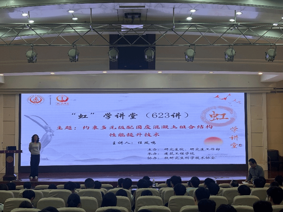 4月7日下午,由研究生院、研究生工作部主辦,建筑工程學院承辦,校研究生科學技術協會協辦的“虹”學講堂第623講在南校區北院學術交流中心舉辦。廣州大學任鳳鳴教授作題為“約束多元級配固廢混凝土組合結構性能提升技術”的報告,建筑工程學院邢國華教授主持,相關學院共180余名師生參加講座。
