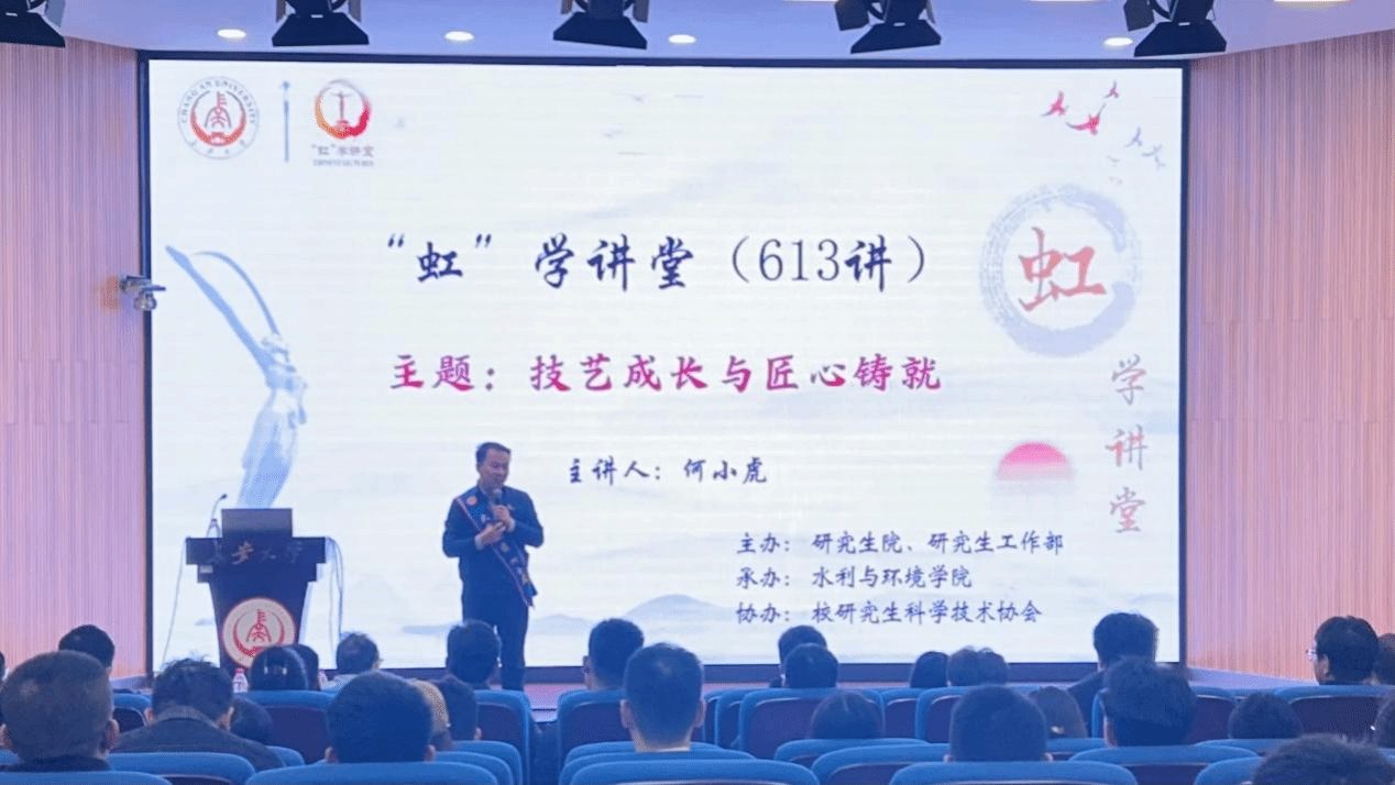 3月13日下午,由研究生院、研究生工作部主辦,水利與環境學院承辦,校研究生科學技術協會協辦的“虹”學講堂第613講在南校區東院伯聲報告廳舉辦。西安航天發動機有限公司高級工程師何小虎作題為“技藝成長與匠心鑄就”的報告,相關學院共180余名師生參加講座。