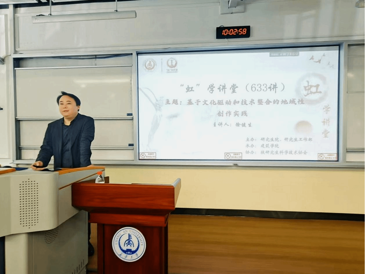4月23日上午,由研究生院、研究生工作部主辦,建筑學院承辦,校研究生科學技術(shù)協(xié)會協(xié)辦的“虹”學講堂第633講在南校區(qū)北院B171教室舉辦。西安建筑科技大學徐健生教授作了主題為“基于文化驅(qū)動和技術(shù)整合的地域性創(chuàng)作實踐”的報告,建筑學院劉啟波教授主持報告會,相關(guān)學院共100名師生參加講座。
