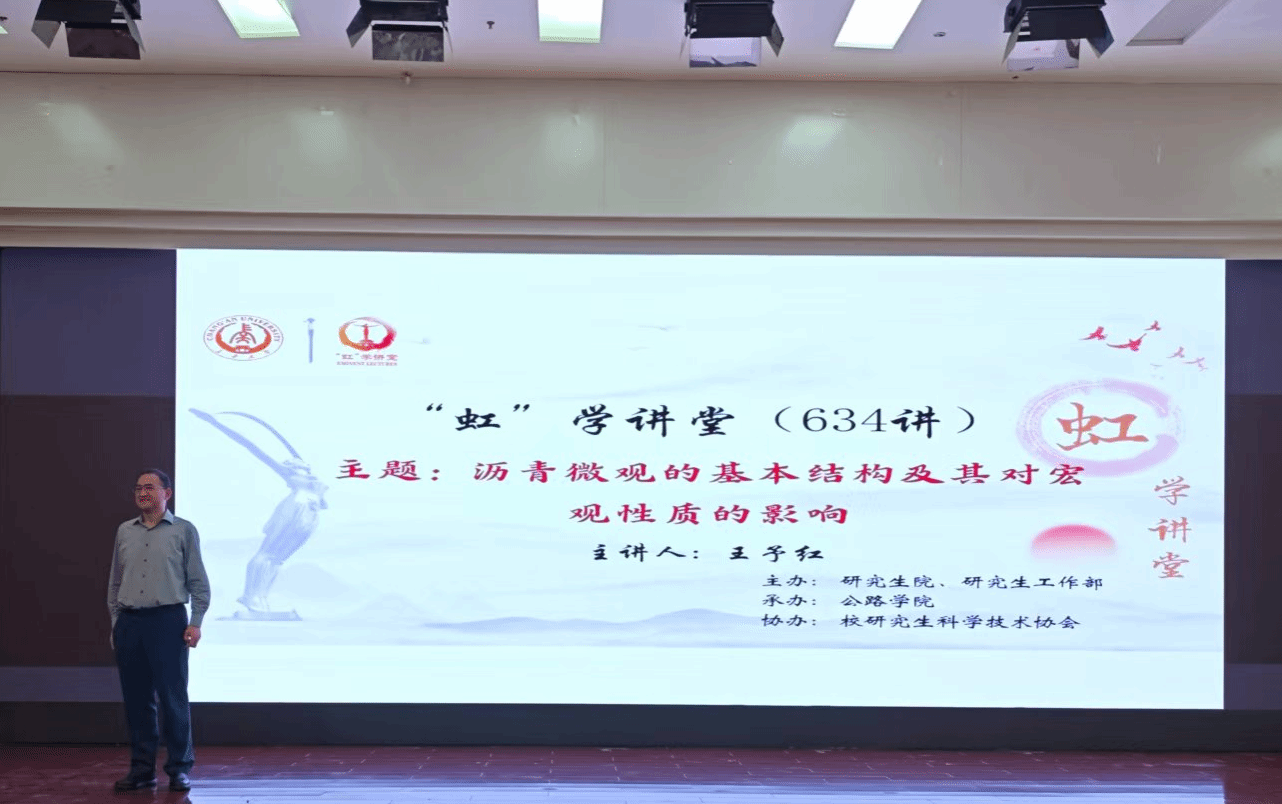 4月24日上午,由研究生院、研究生工作部主辦,公路學(xué)院承辦,校研究生科學(xué)技術(shù)協(xié)會(huì)協(xié)辦的“虹”學(xué)講堂第634講在南校區(qū)東院伯聲報(bào)告廳舉辦。香港理工大學(xué)王予紅教授作題為“瀝青微觀的基本結(jié)構(gòu)及其對(duì)宏觀性質(zhì)的影響”的報(bào)告,公路學(xué)院溫永副教授主持報(bào)告會(huì),相關(guān)學(xué)院共200余名師生參加講座。