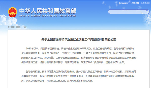 29/ 2021-11我校入選教育部全國普通高校畢業生就業創業工作典型案例